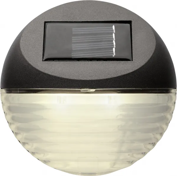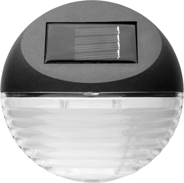 In sunlight, the solar panel charges the rechargeable battery.