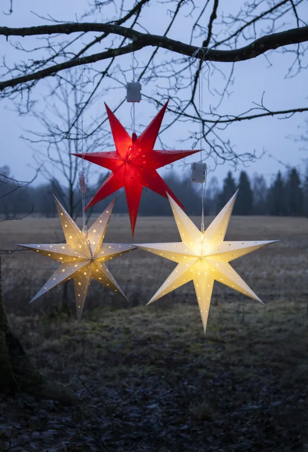 Decorative hanging star with LED-lighting for outdoor use. Beautiful window decoration for every room in the house. The built in timer makes it easy to decide when the product should be ON/OFF.