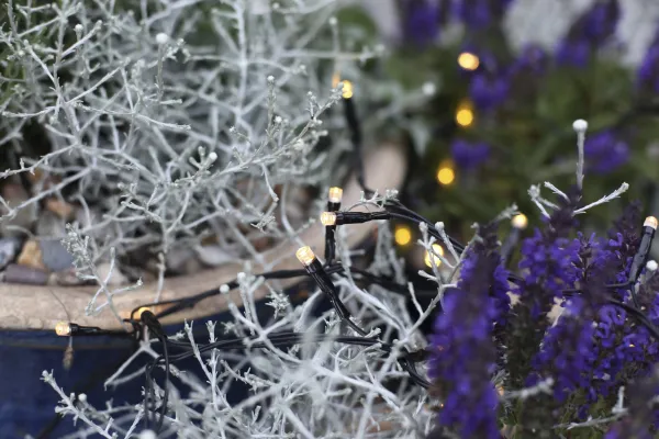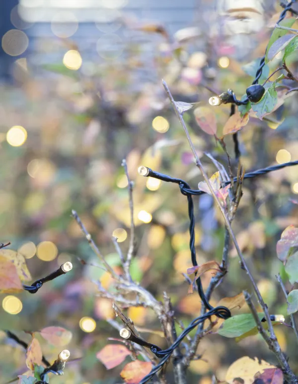 Extra unit to System Decor, light chain with 100 warm white LED´s and black cable. Extend your System Decor with this light chain. Decorate your house, garden and patio. System decor products is easy to use, the products have slim cabels and easy to conceal. The light time is about 10000h..