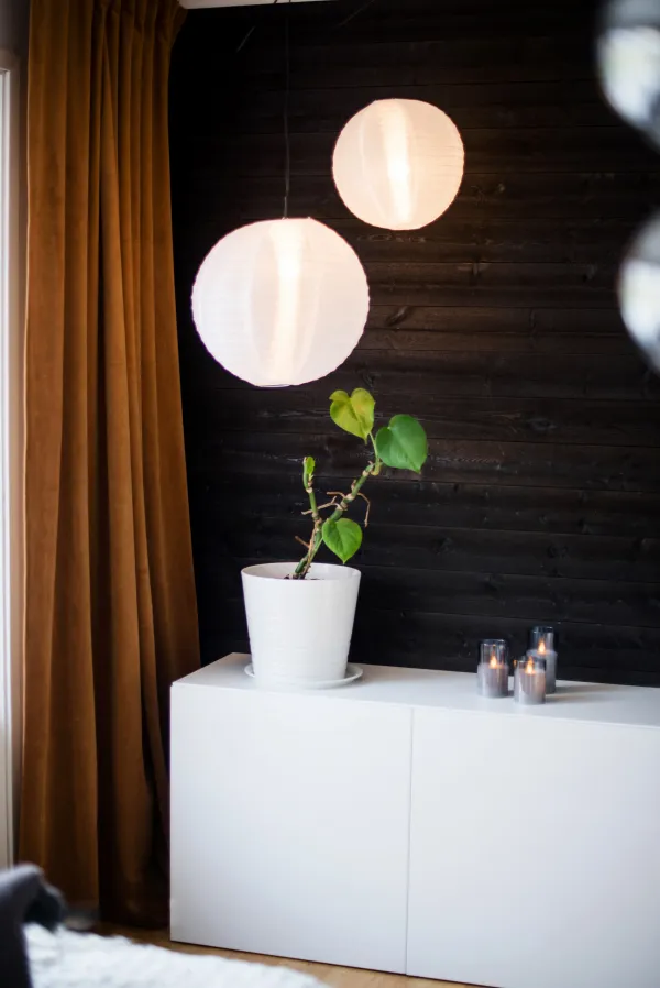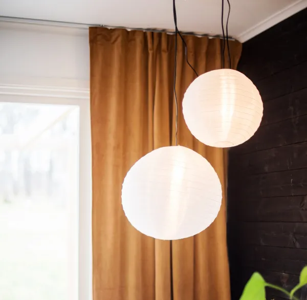 Complete cord stand, the cord is 3.5m and has a switch, regulated shorter with the help of the three-hole hanger as needed. Combine the suspension with a nice light source. Can be used for screens and paper stars.
