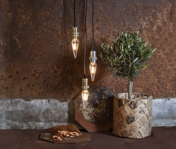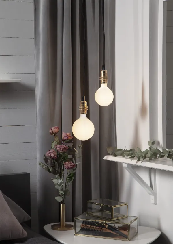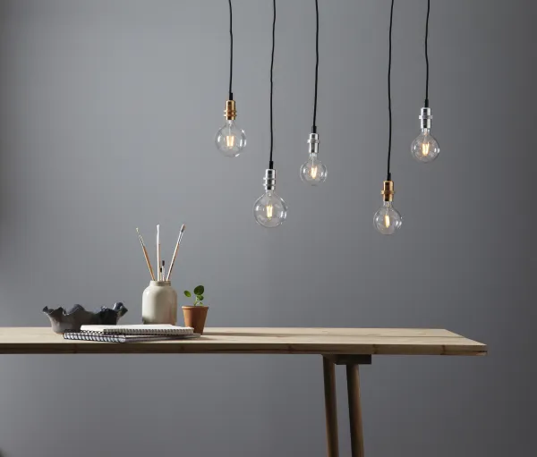 Cord stand with metal lamp holder, the lamp holder has two rings. Black cable. E14 socket. Combine the suspension with a stylish light source. A suspension that provides great interior design possibilities in the house.