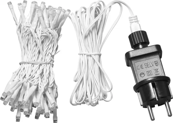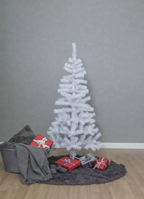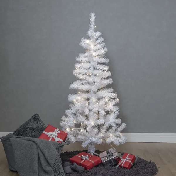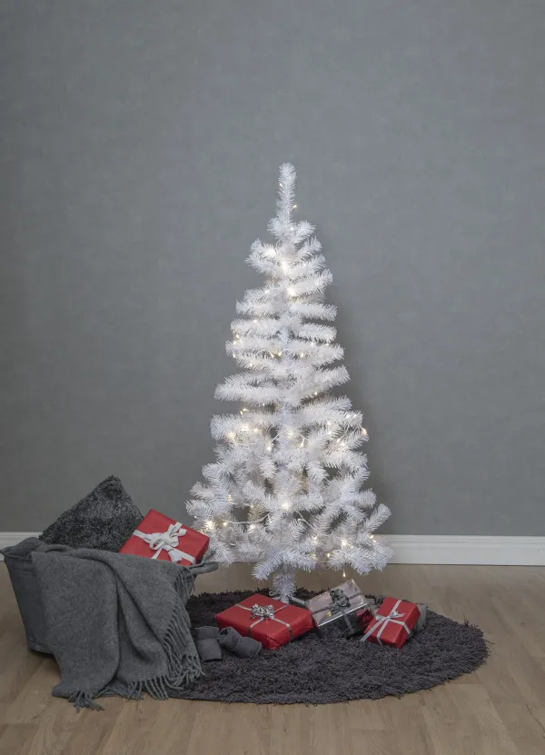 150cm artificial tree with a 80-light chain in Crispy white, packed on the side. The Christmas tree can be used both with and without the light chain.