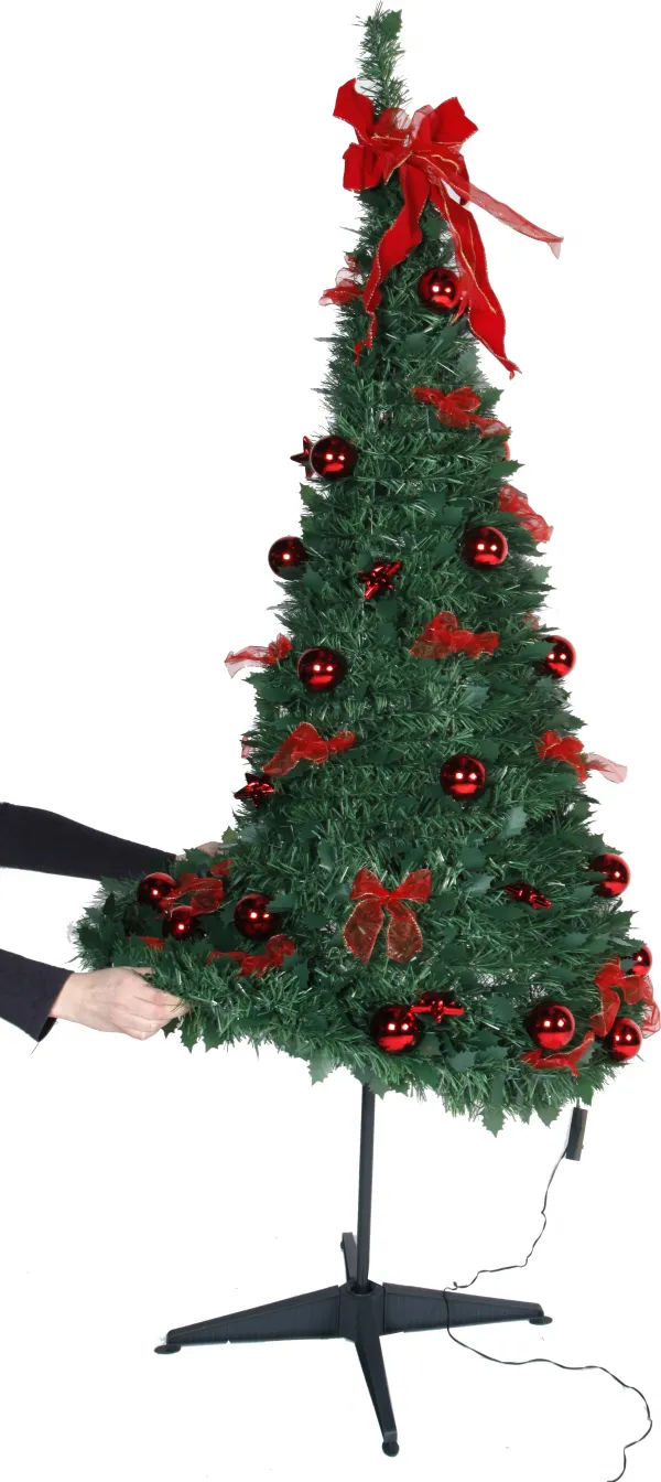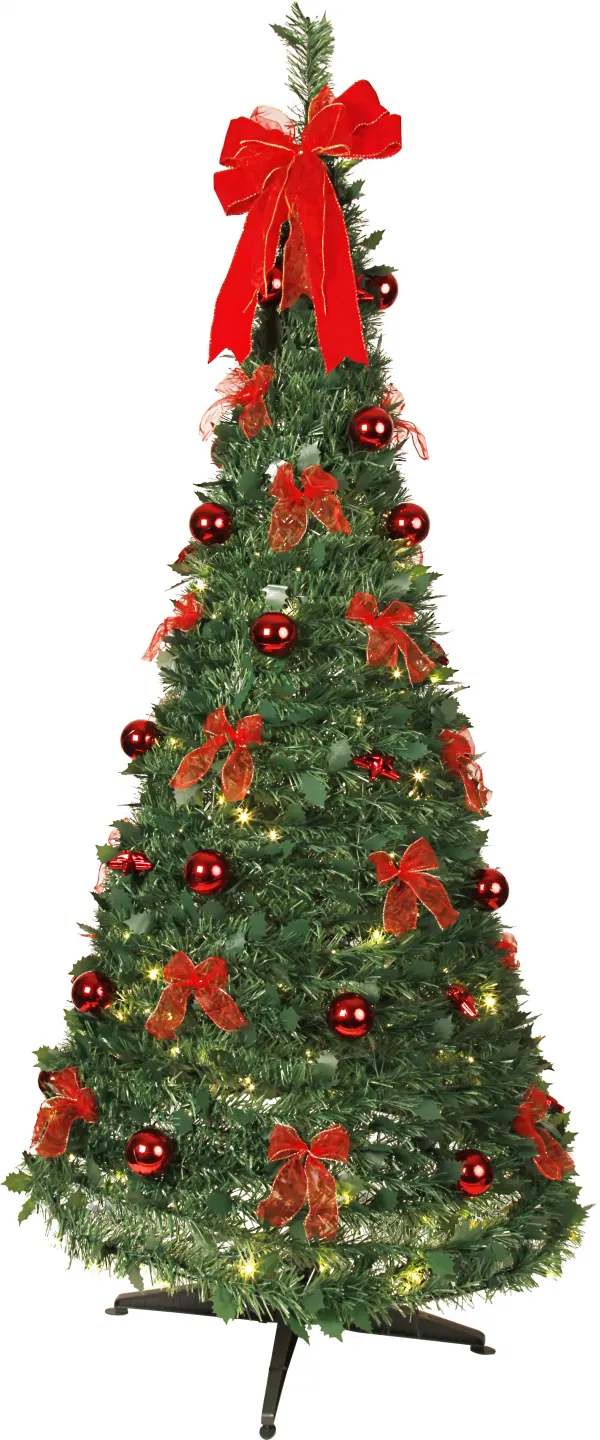 A beautiful pop-up Christmas tree for indoor use. Creates lovely Chirstmas atmosphere in the house. The Christmas tree has 144 LED light sources and red decoratons.